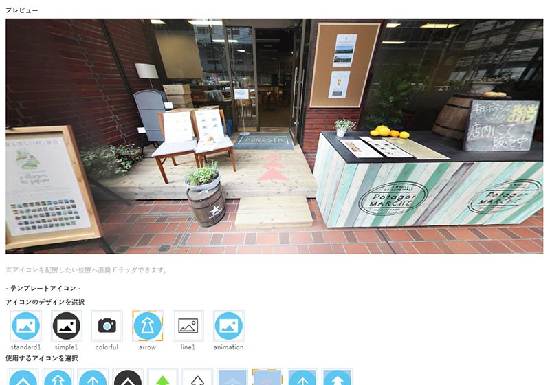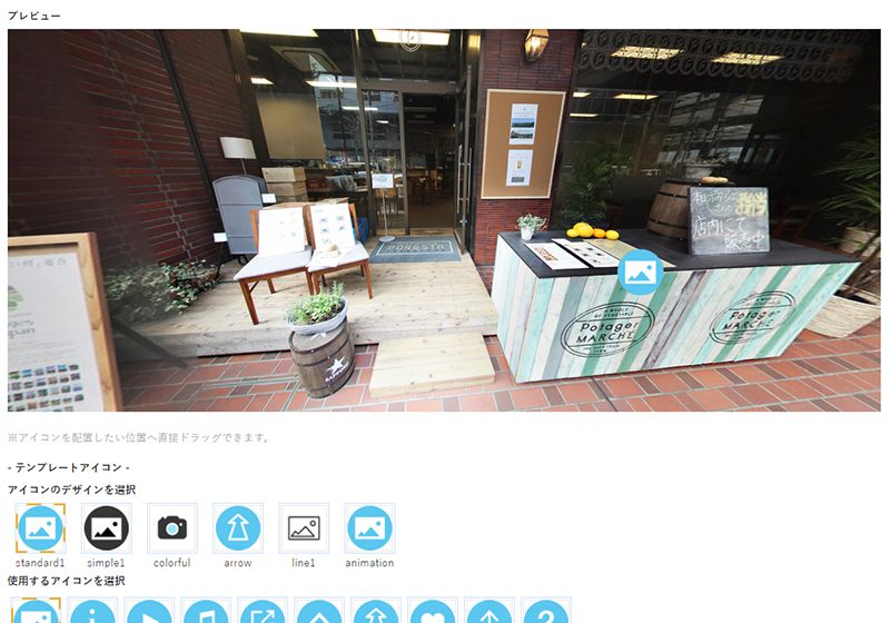 360度パノラマ画像上にあるアイコンをク