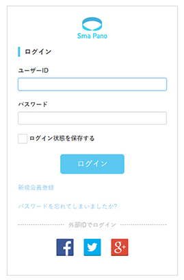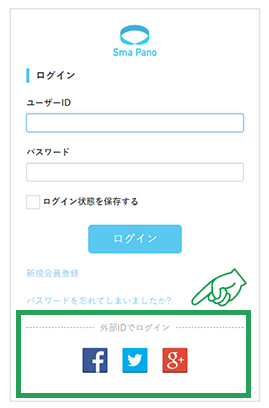 「Facebookアカウント、Twitterアカウント、Google+アカウント」で登録していただいた場合、SNSアイコンからのログインとなります。