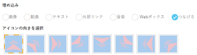 「埋め込み」の設定で「つなげる」を選択します。矢印の方向も設定できます。