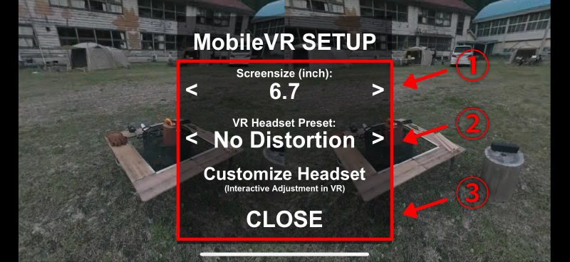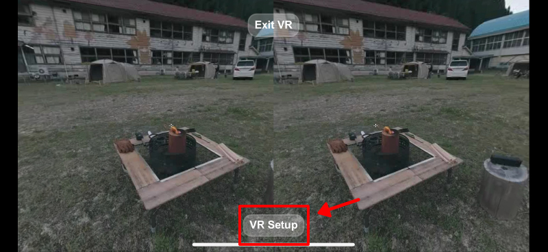 画面をタップすると表示される、VR Setup をタップすると、MobileVR SETUP 画面が表示されます。