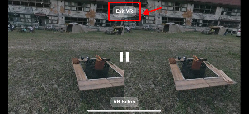 画面をタップすると表示される、Exit VRをタップすると、視点が固定し、元の表示に戻ります。