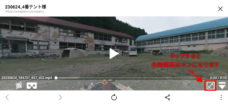 ご使用のスマートフォンが、以下のような画面表示の場合は、コントロールバーに表示されている全画面表示オンアイコンをタップし、全画面表示にします。