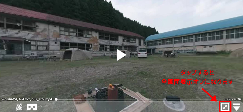 元の表示に戻す場合は、以下のような全画面表示オフアイコンをタップします。