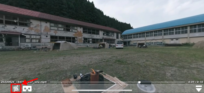 コントロールバーに表示されているVRモードアイコンをタップします。