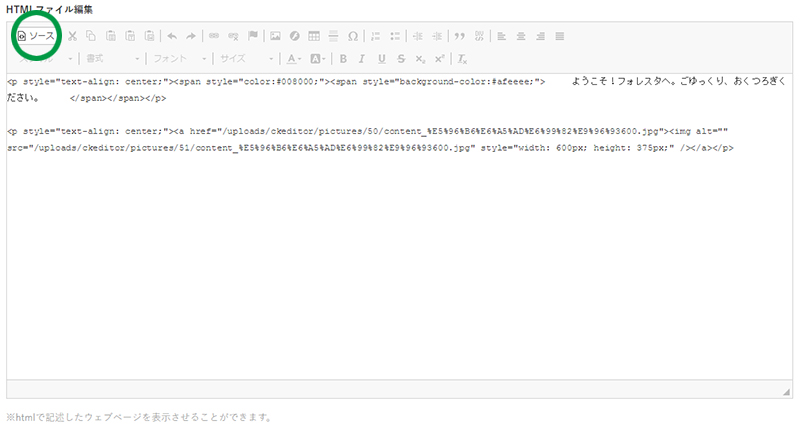▼HTMLソースへ切り替えも可能です。
