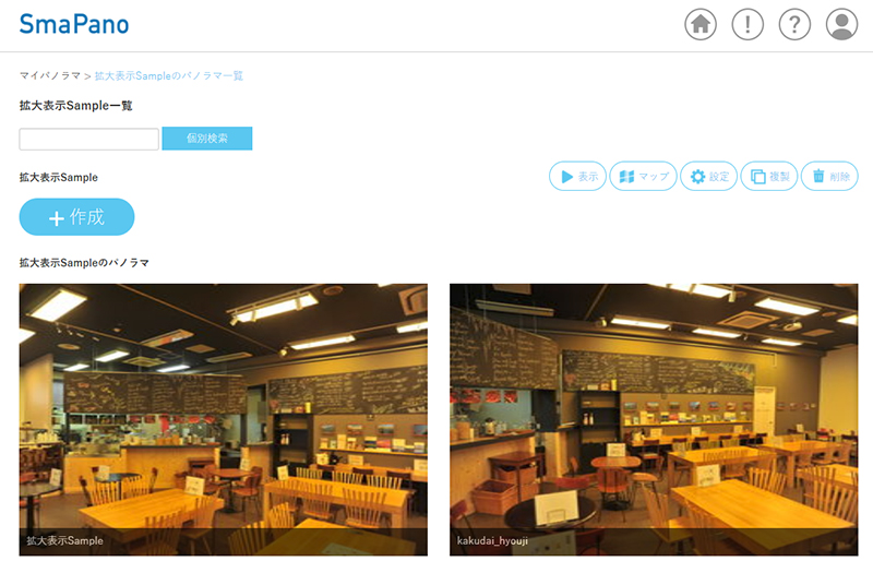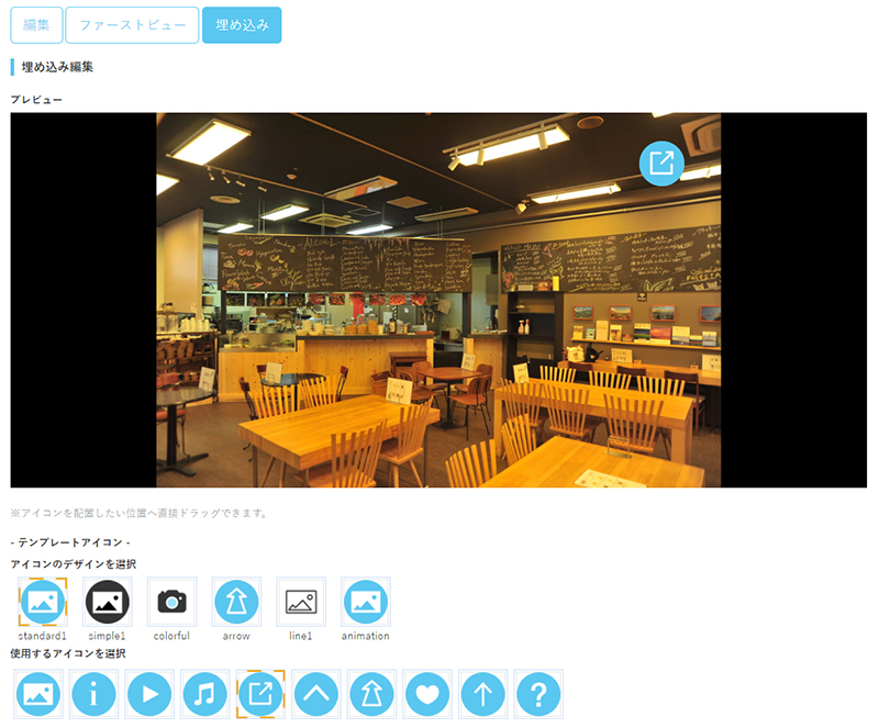 パノラマ・平面図での「埋め込み」で、「外部リンク」に大きな画像のページを設定して、拡大表示機能として使用することができます。